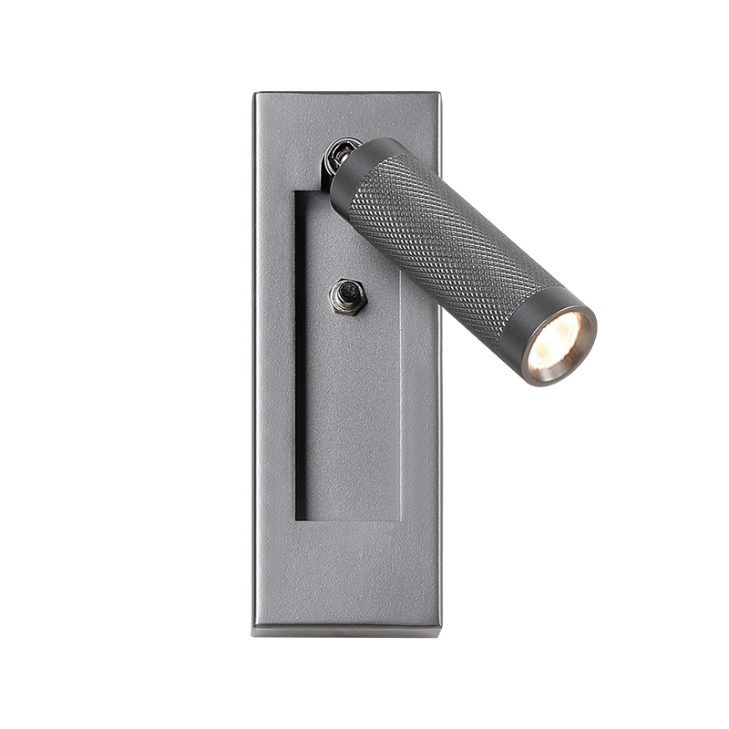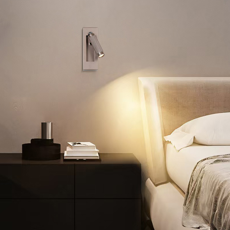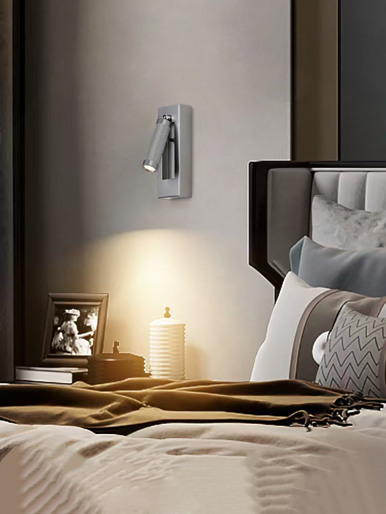 A SOFT WHITE LED HEADBOARD READING LIGHT IS HOUSED WITHIN A detailed knurling CYLINDER