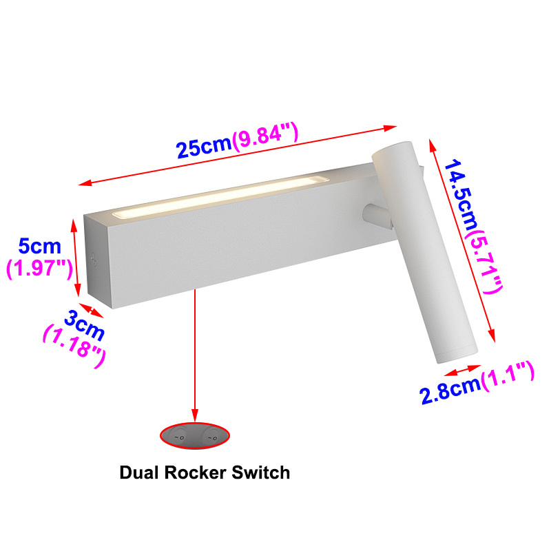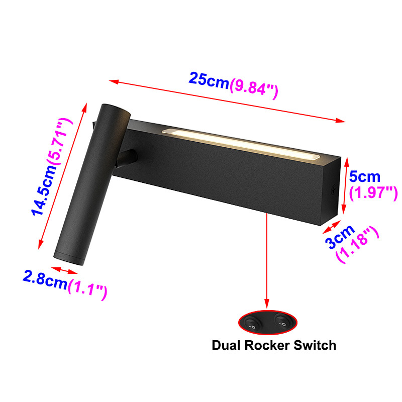 6W COB LED Wall Lamp Swivel Direction Spotlight Bedroom Bedside Light Fixture Dual Switch Style # D22124