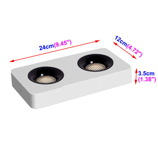 18W(Two-head): 24cm/9.45"x12cm/4.72"x3.5cm/1.38";