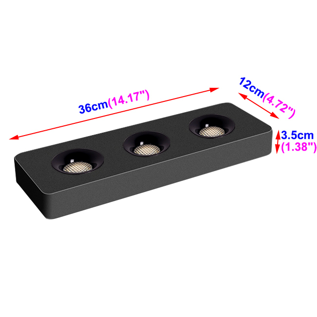 27W(Three-head): 36cm/14.17"x12cm/4.72"x3.5cm/1.38";