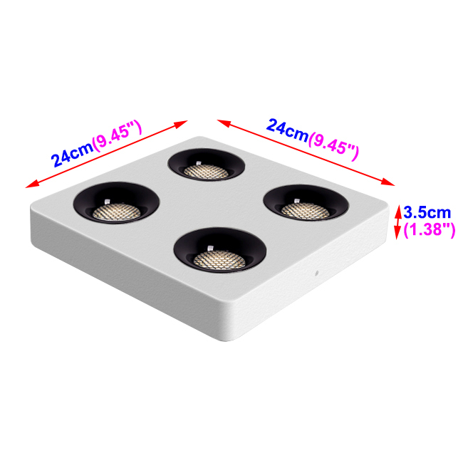 36W(Four-head): 24cm/9.45"x24cm/9.45"x3.5cm/1.38"; |