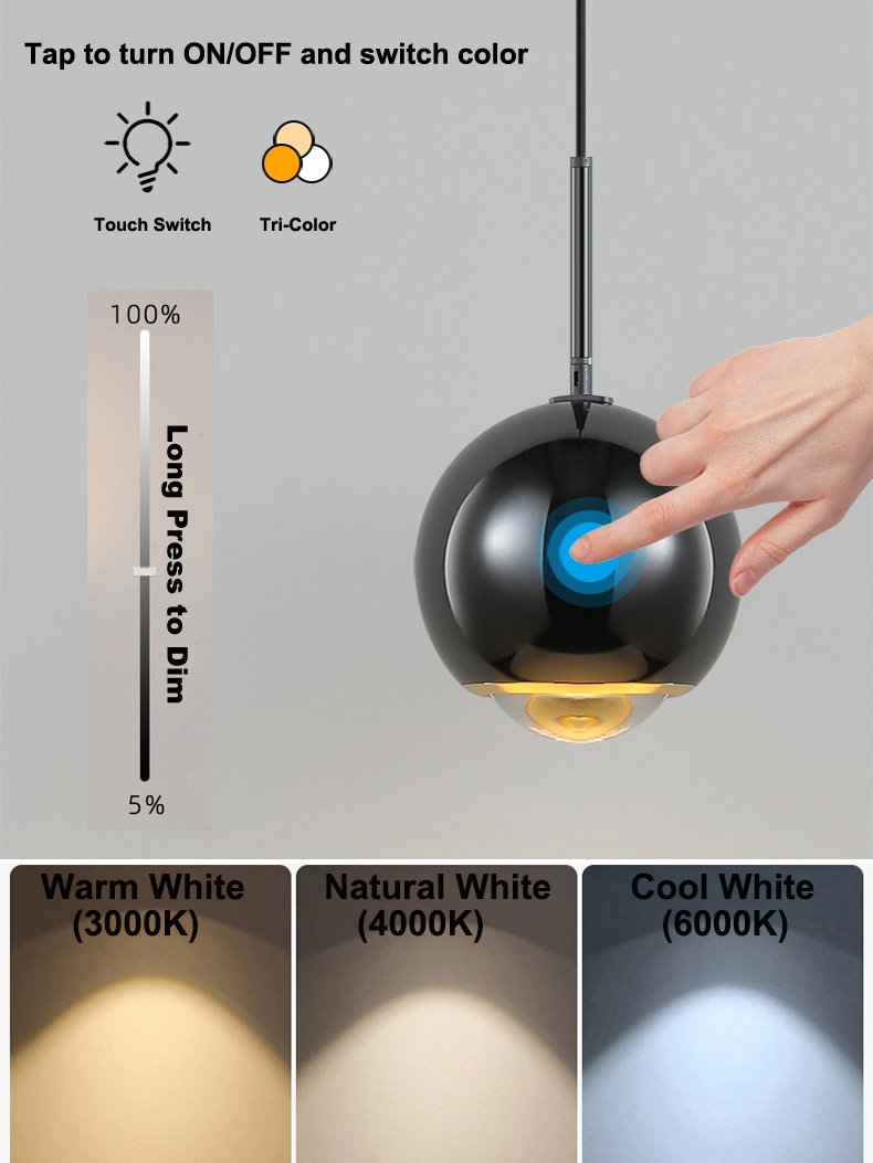 Touch Switch,Tap to turn On/Off Switch color,long press to adjust brightness. |
