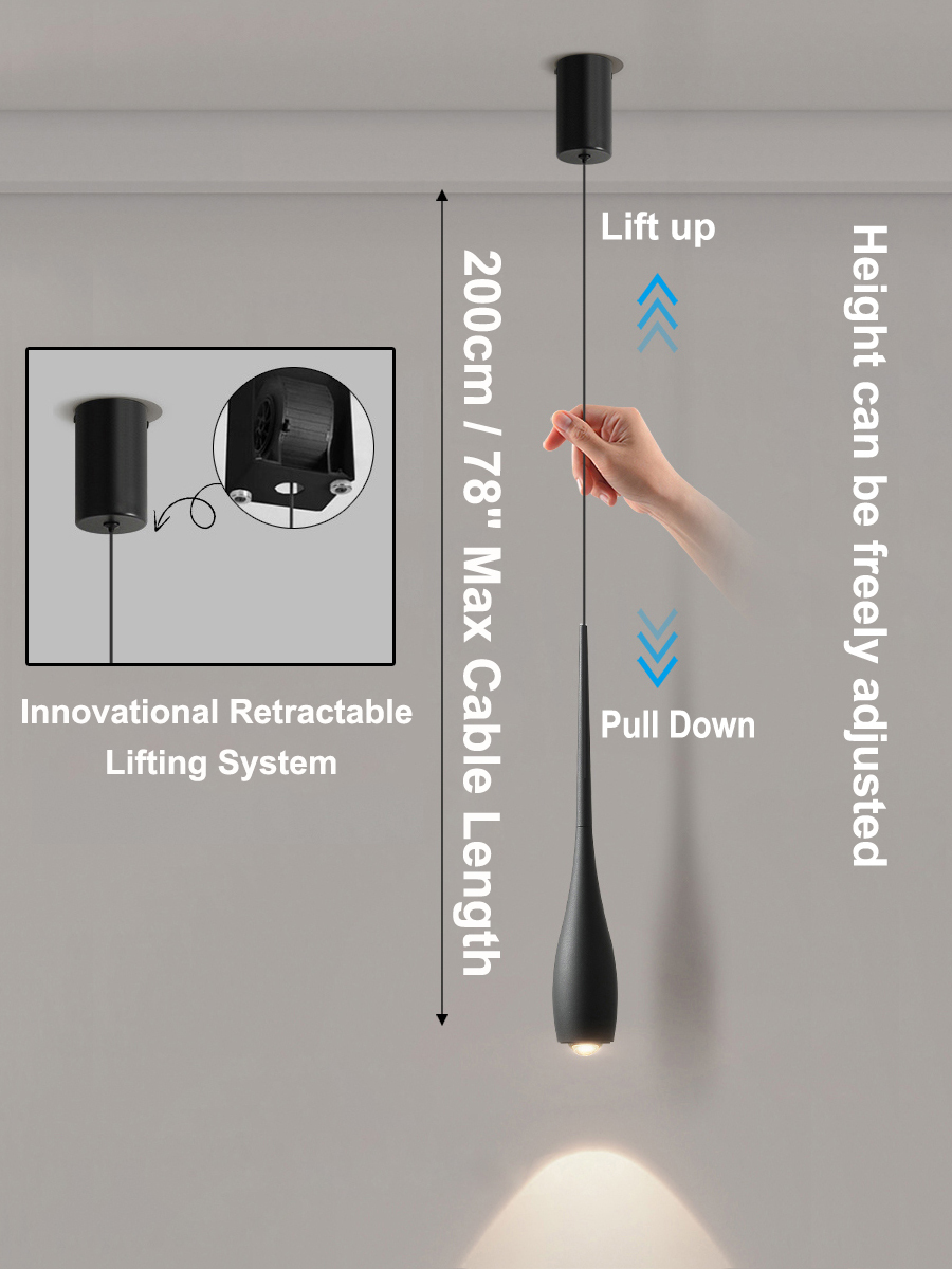 8W Dimmable LED Stretch Hanging Light Pulley Adjust Height Chandelier Water-drop Pendant Lamp
