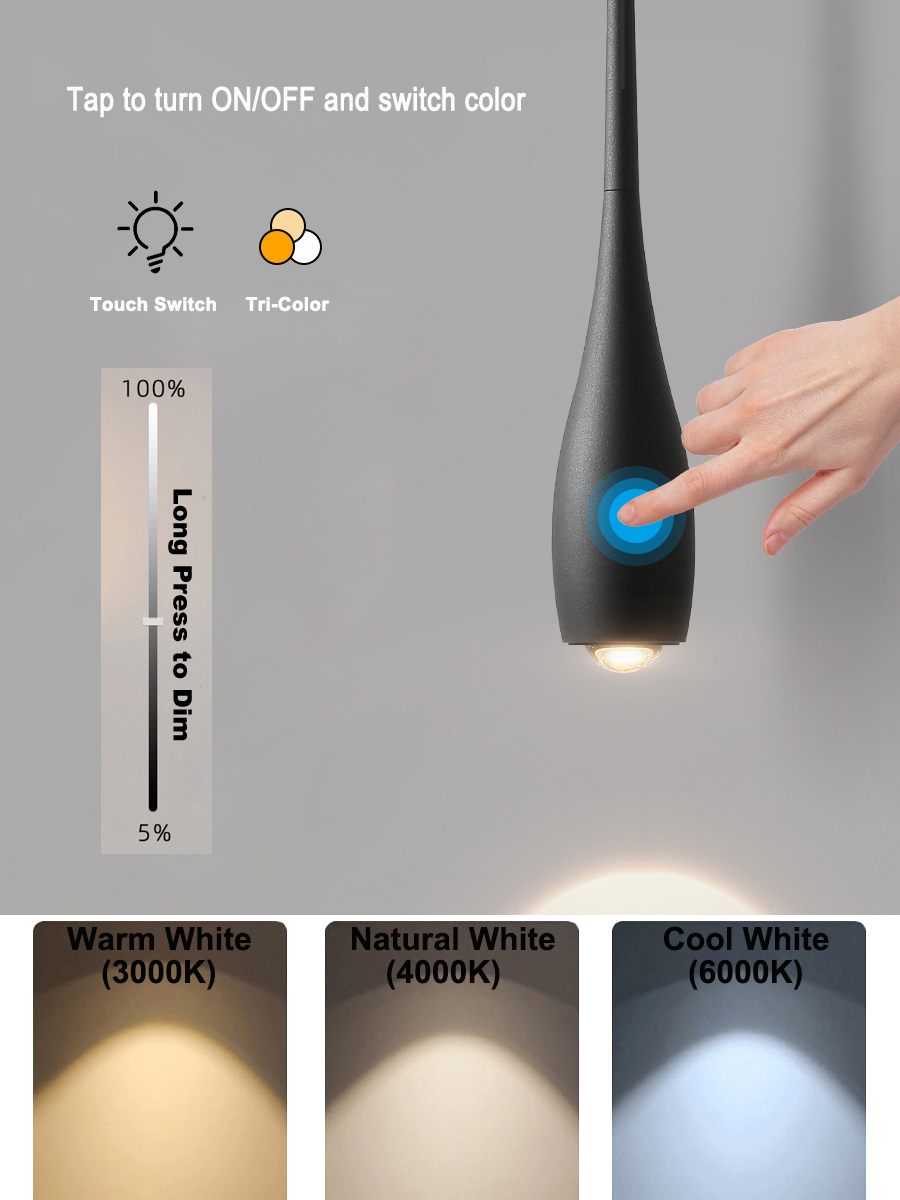 Touch Switch,Tap to turn On/Off Switch color,long press to adjust brightness. |